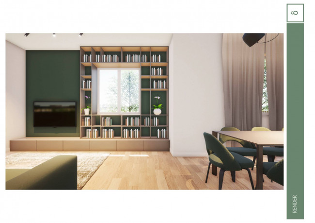 L'Appartamento sarà cosi organizzato :ingresso, salone doppio, cucina abitabile , ripostiglio, tre camere da letto e due bagni. Terrazzino su cui si affaccia il salone e lungo balcone che serve tutte le stanze che si affacciano verso il giardino condominiale.